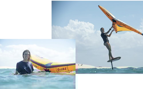 Corajosa, comunicativa e super easy going já conquistou muitos títulos, foi a primeira mulher a velejar na Antártida e o mais recente agora em novembro, o de campeã sul- americana em wingfoil race no super foil Brasil, um esporte aquático novo, aonde ela já se sobressai dentro do cenário Mundial.