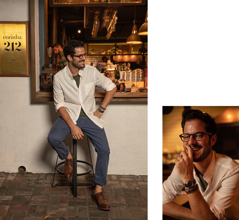 “O Cozinha 212 nasceu de uma paixão, lá se vão três anos. É uma história de muito carinho e muita dedicação. Quase todas as minhas noites são no restaurante. No começo, quando fazíamos eventos, nos dividíamos na cozinha, hoje em dia o Stefan toca essa parte com maestria e eu fico mais na parte da comunicação, cuidando dos relacionamentos e da divulgação. Gastronomia para mim é um conjunto de fatores, não é apenas a comida. O serviço, quando tem carinho envolvido, por exemplo, te faz sair do lugar com outra perspectiva.”