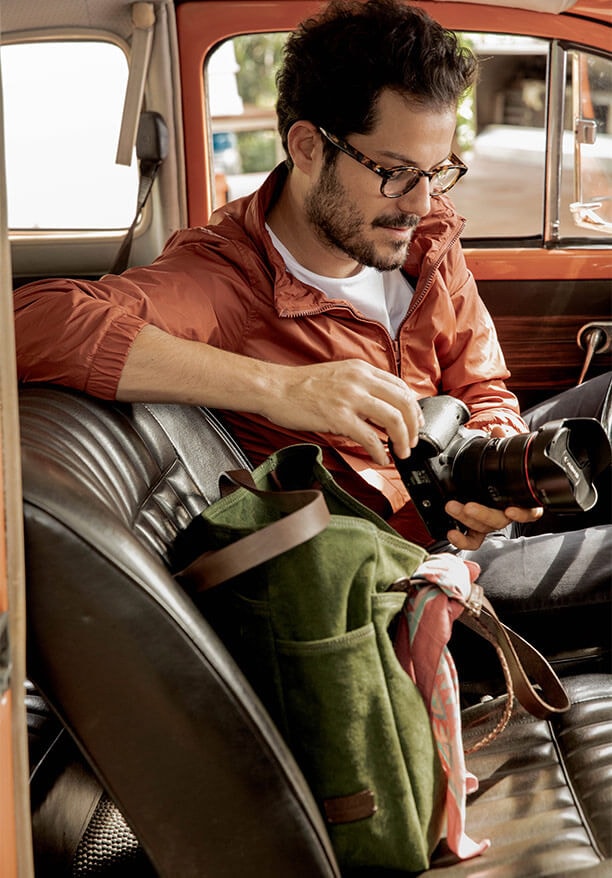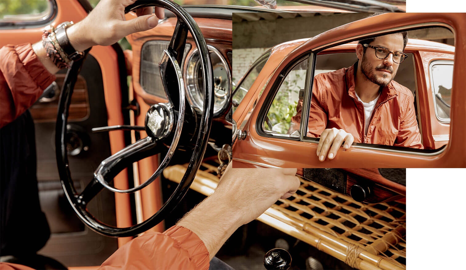 Amante de carros antigos, Victor Collor tem um Porsche 914 amarelo e está reformando um 912 branco, ambos dos anos 70. A década é a sua preferida quando o assunto é automóvel. Mas o seu carro do dia a dia é um simpático Fusca 1972. Laranja. “Eu tinha uma coisa com Fusca. Passei um dia inteiro falando com dois amigos que têm uma loja de artigos vintage que eu queria um carro desses. Eles me apresentaram a um outro amigo, que me mostrou o bichinho. Foi amor à primeira vista. O carro tinha suas coisas a fazer, mas o que me pegou, mesmo, foi o laranja, que é a cor predileta do meu avô. É também uma cor rara em Fuscas, produzida por três anos apenas.” O volante envernizado, o aparador de bambu sob o painel espartano ou o suporte retrô para bicicleta na traseira são puro charme e esbanjam personalidade. “Ele é do último ano no Brasil em que faziam o farol chamado ‘olho de boi’”, diz o fotógrafo. “Esse é igual ao do Porsche 356”. É na estrada que a relação entre o dono e seu carro fica mais estreita. “Quando pego o caminho para a horta, sinto que ele se liberta e fica mais feliz por estar acelerando na estrada.”